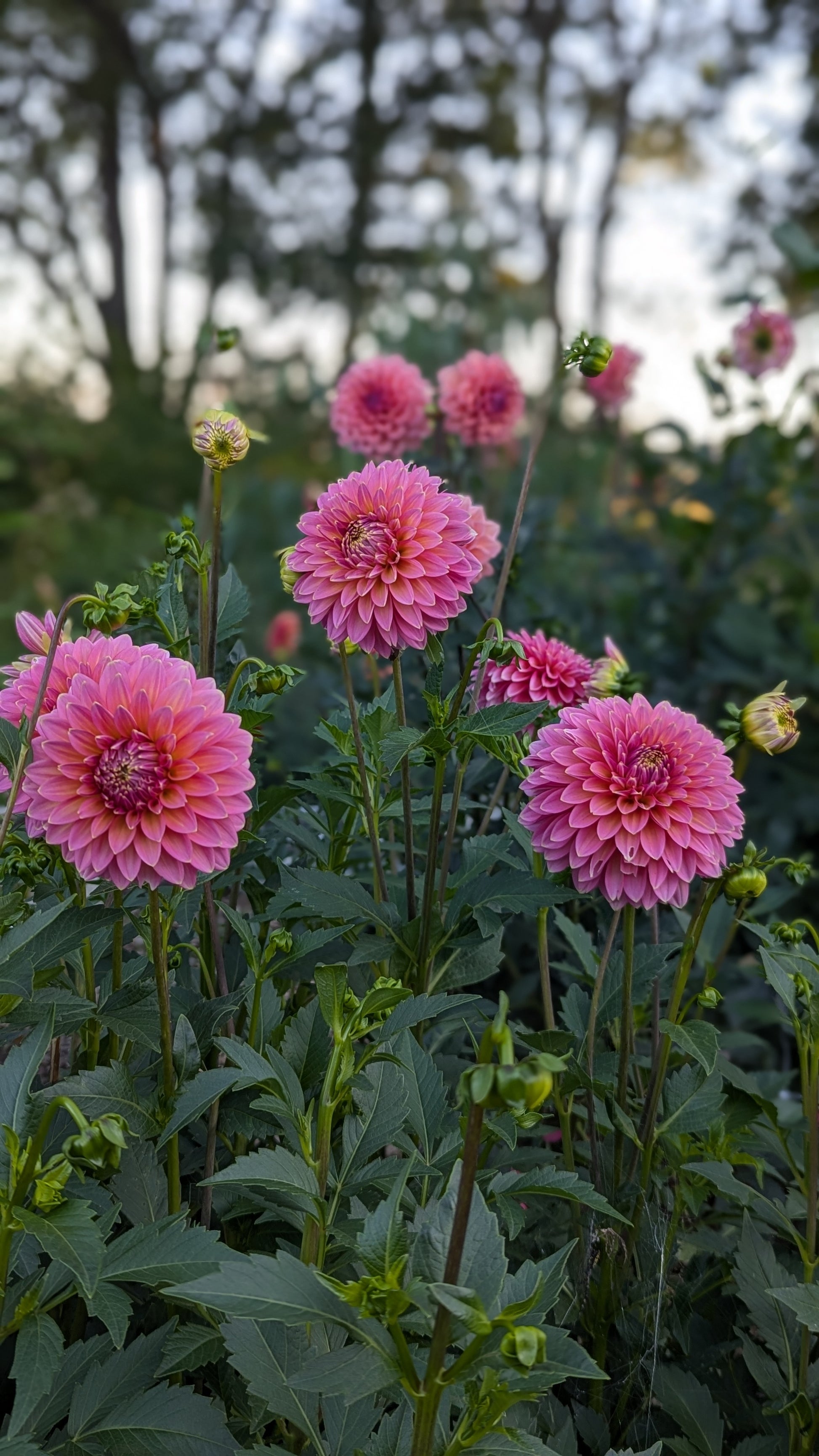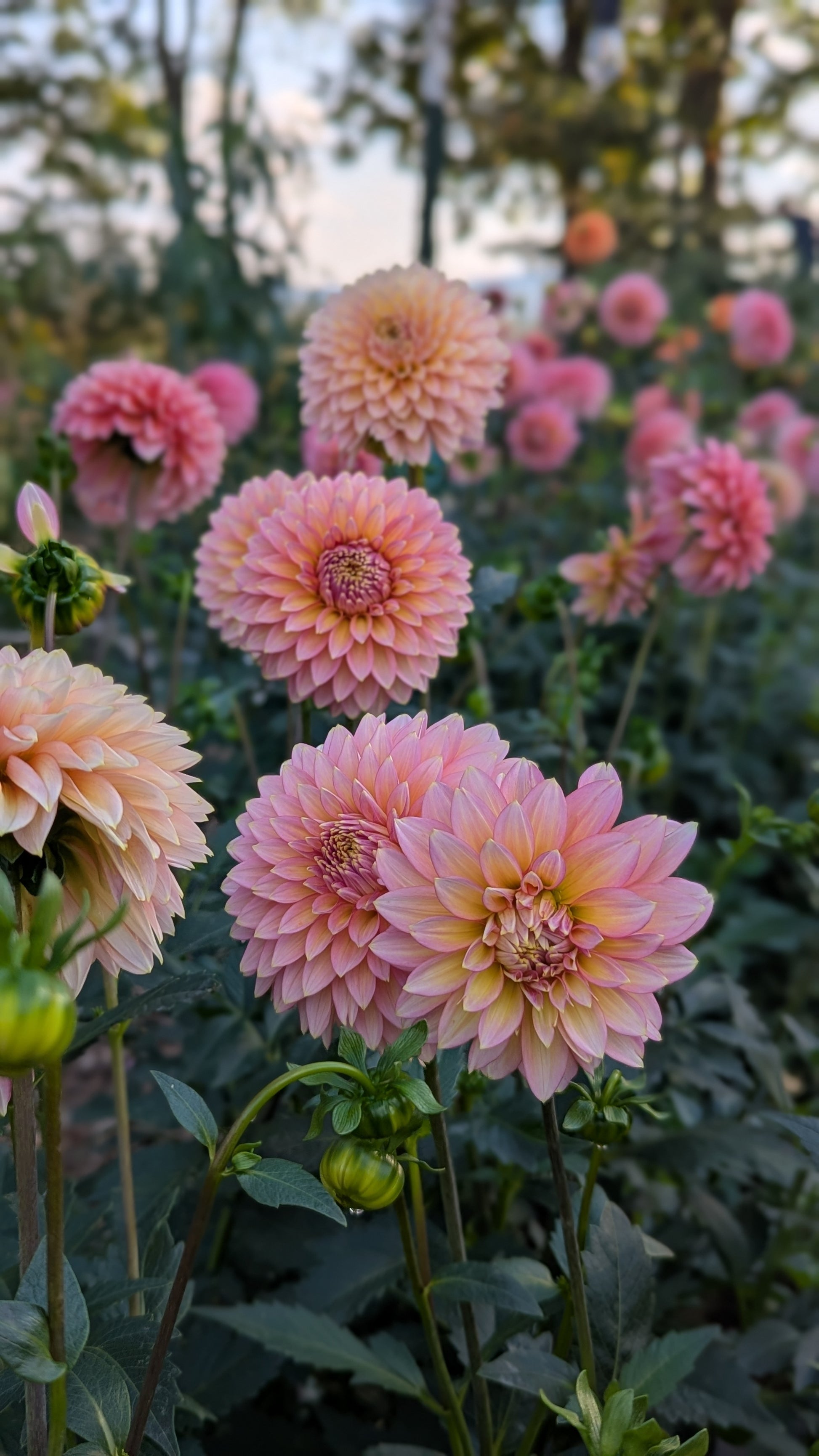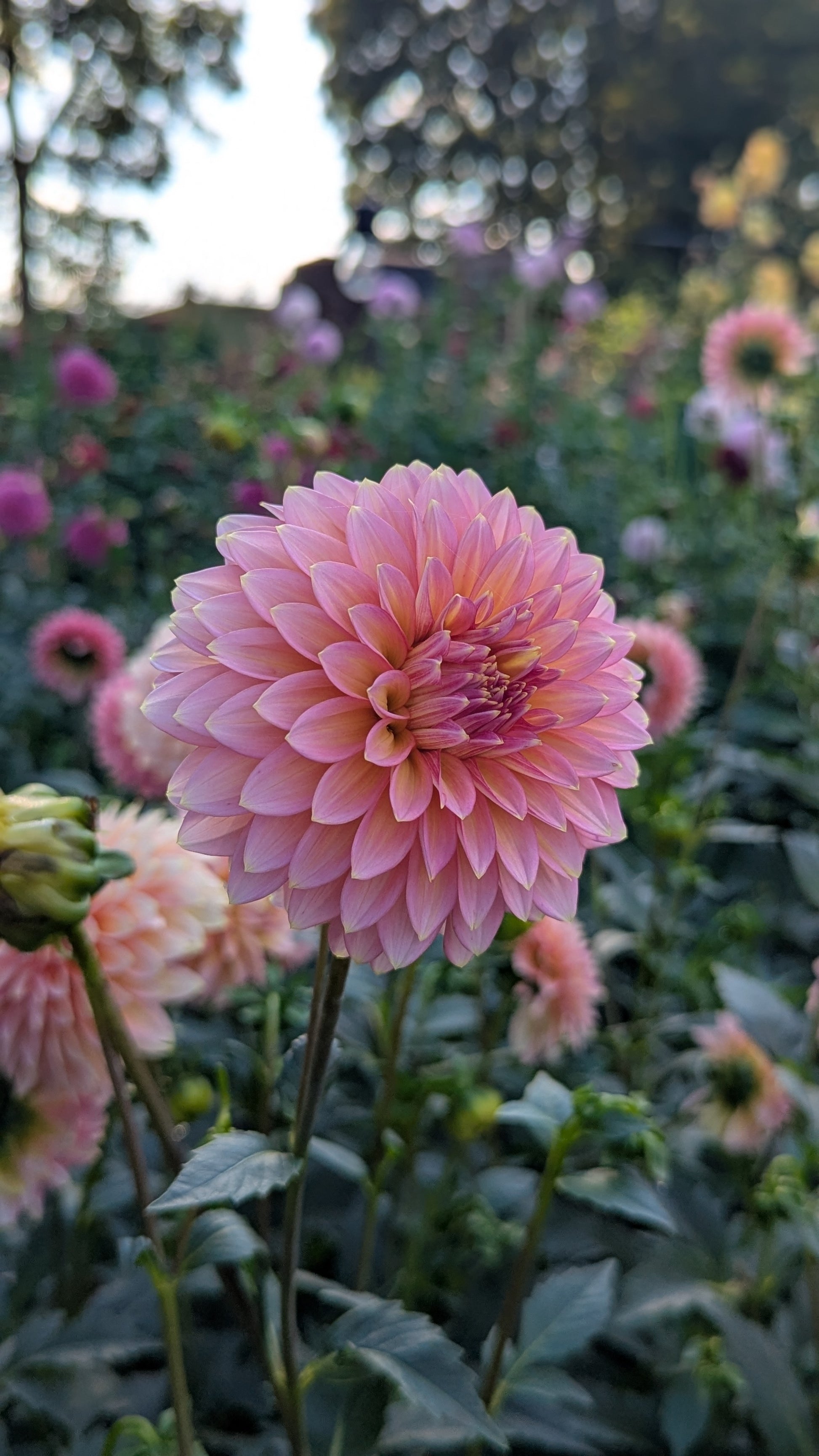 Very heavy bloomer! A beautiful chameleon of a dahlia. Starts out the season brighter pink and fades to a creamy pastel pink in the fall. Both versions are beautiful.